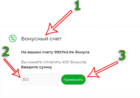 Например, за покупку на 1 000 ₽, вы получите 20 бонусов на свой счет.